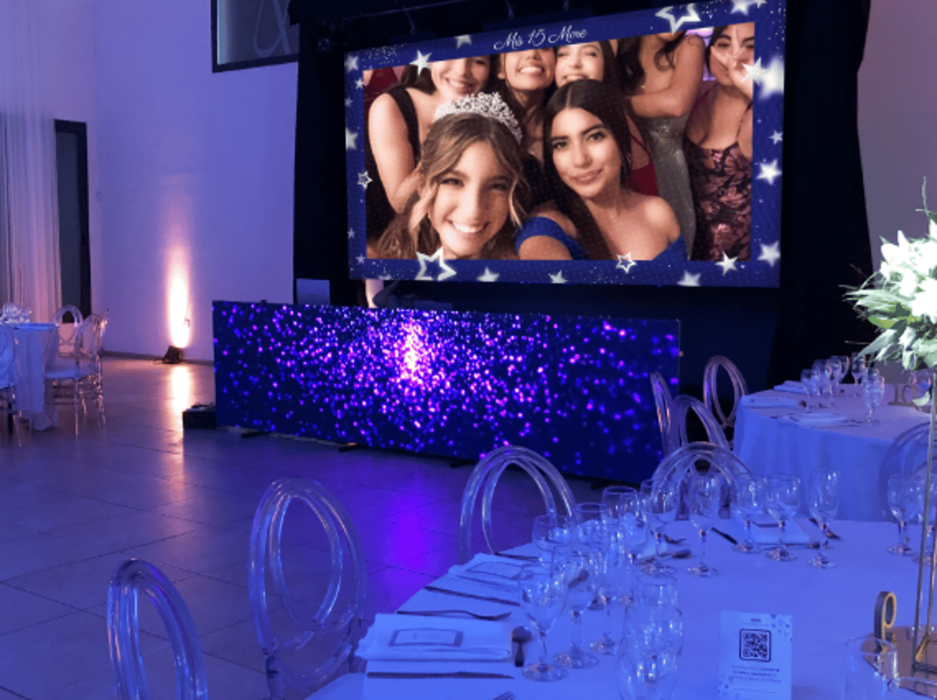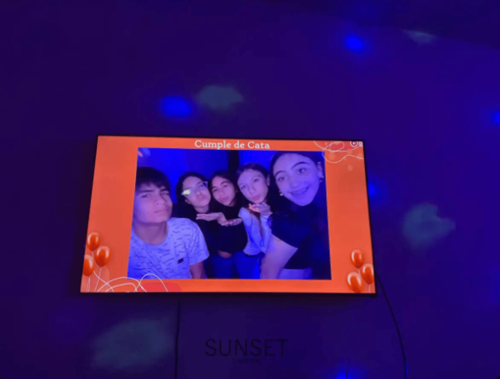 Imagina que cada sonrisa, cada momento capturado, se proyecta en la pantalla de tu evento para que todos lo disfruten al instante. Tus invitados no solo ven las fotos, las viven contigo.