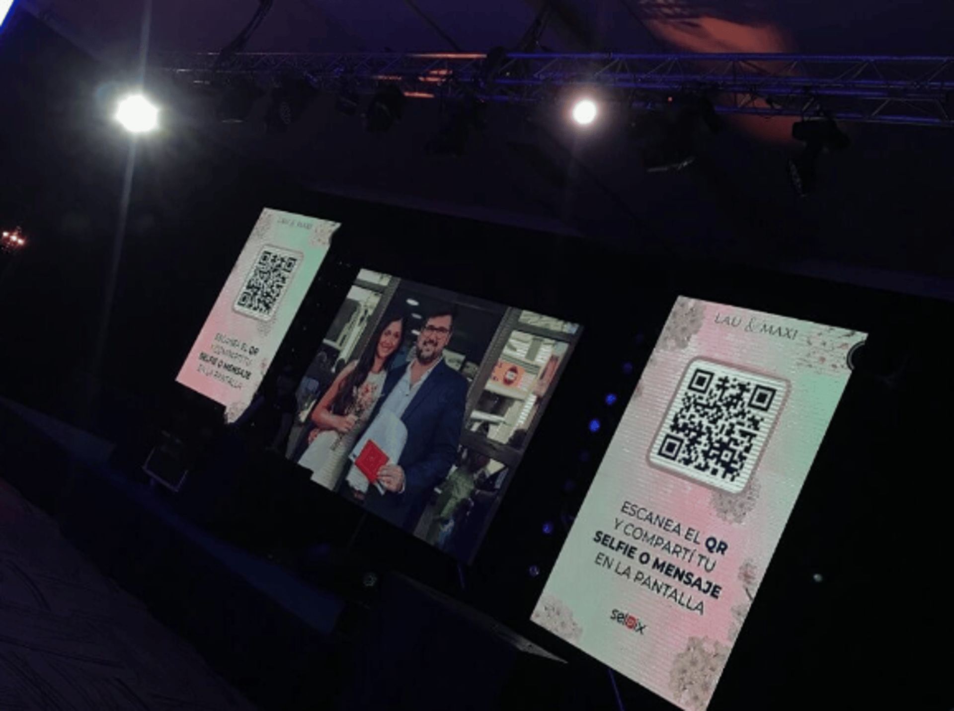 Fotos y mensajes proyectados en tiempo real en la pantalla de tu evento